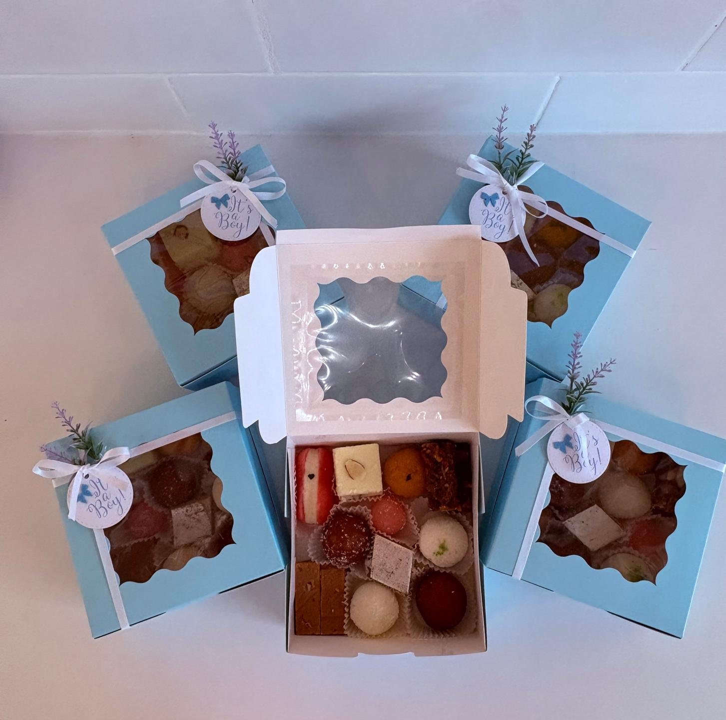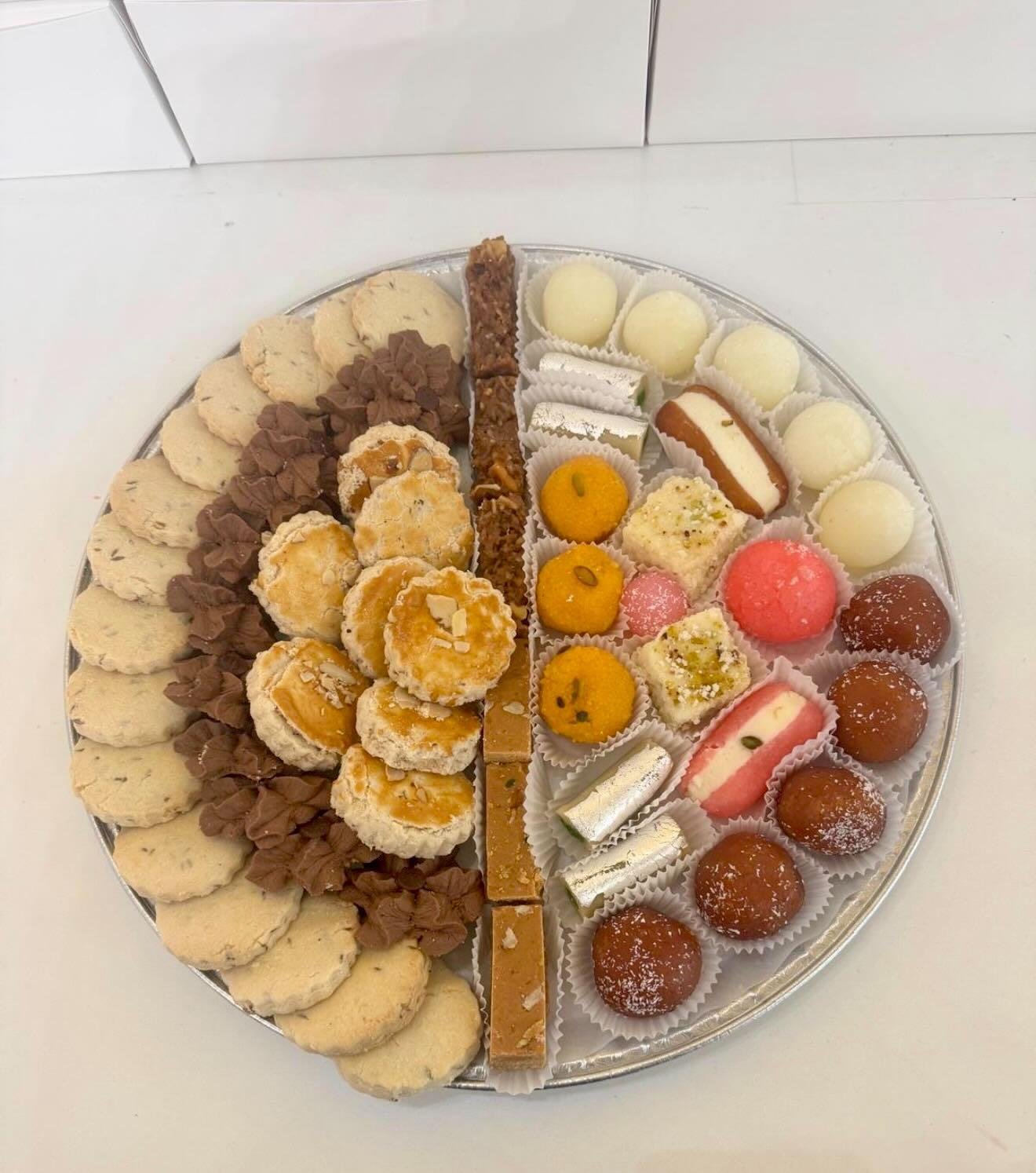 No matter the occasion birthday, wedding, anniversary, new born or family gathering we’re here to help.We can also create large mithai platters and biscuit boxes perfect for sharing.